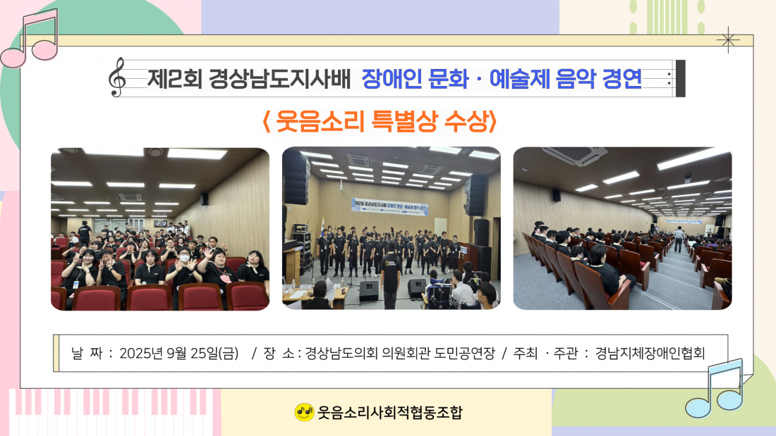 제2회 경상남도지사배 장애인 문화ㆍ예술제 음악 경연 <특별상> 수상 소식