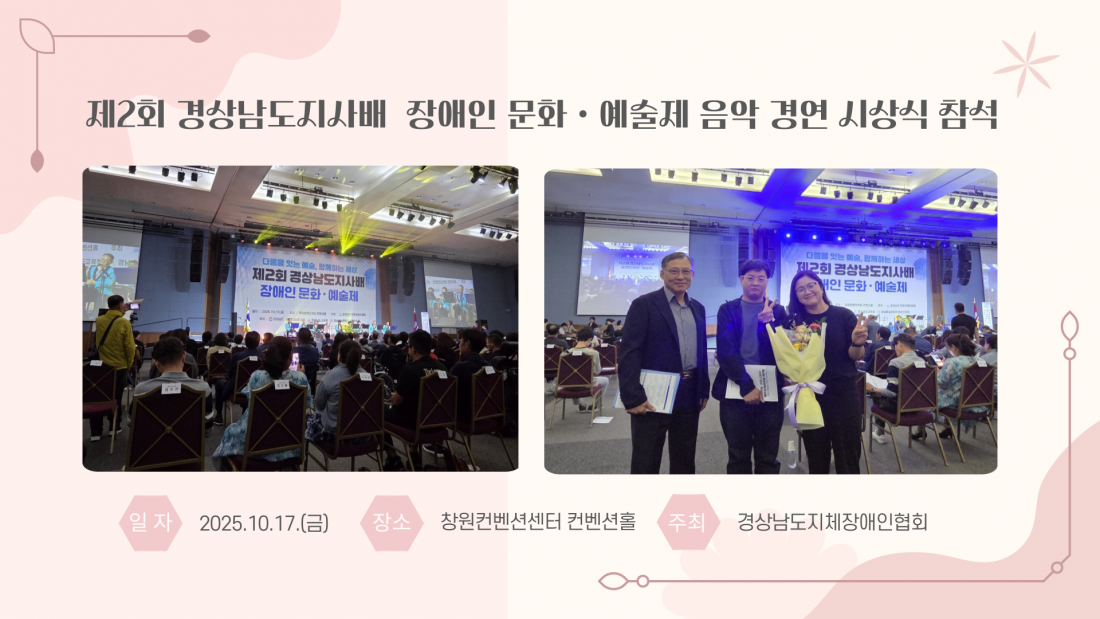 내용 : 제2회 경상남도지사배 장애인 문화, 예술제 음악 경연 시상식 참석